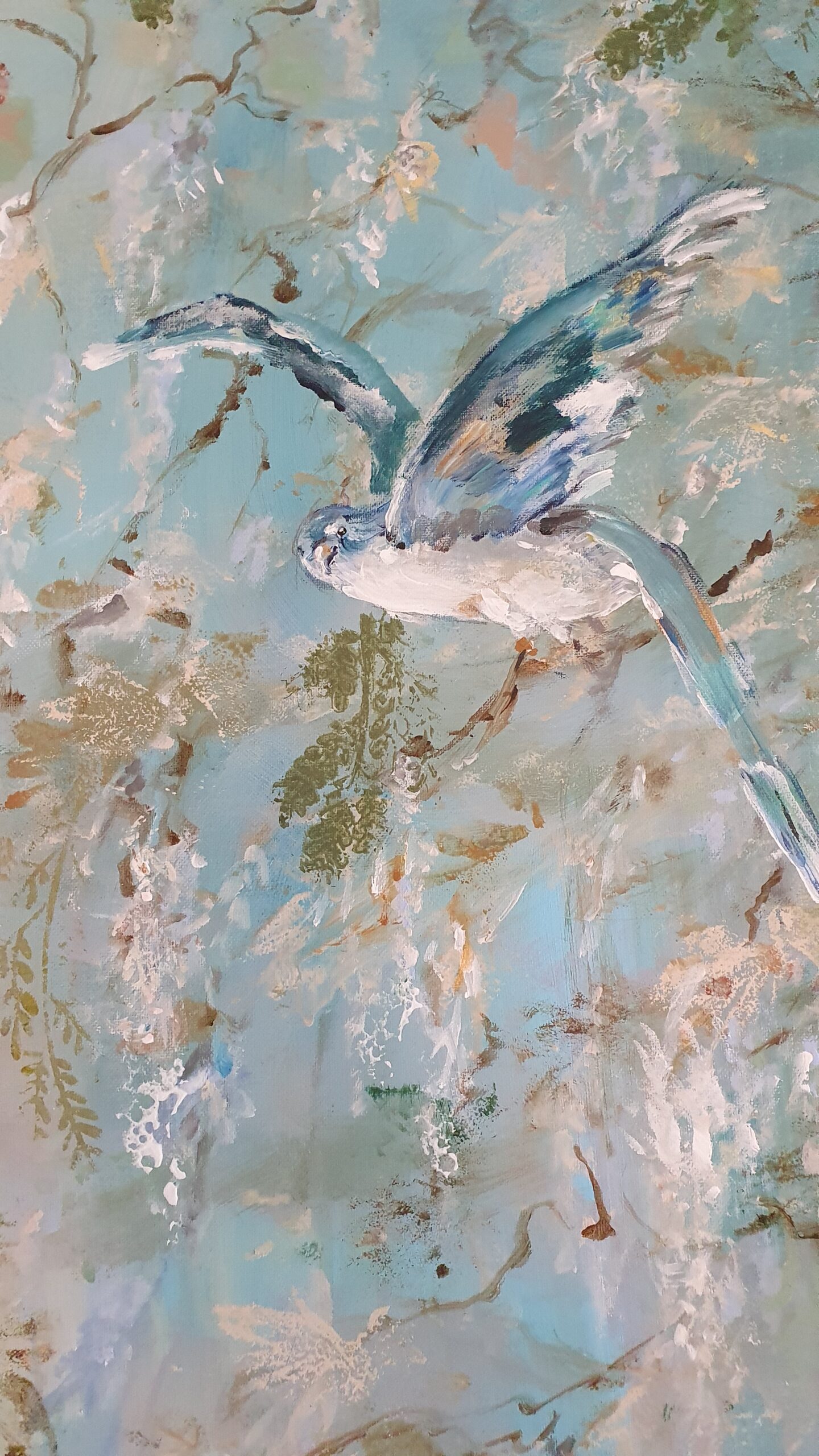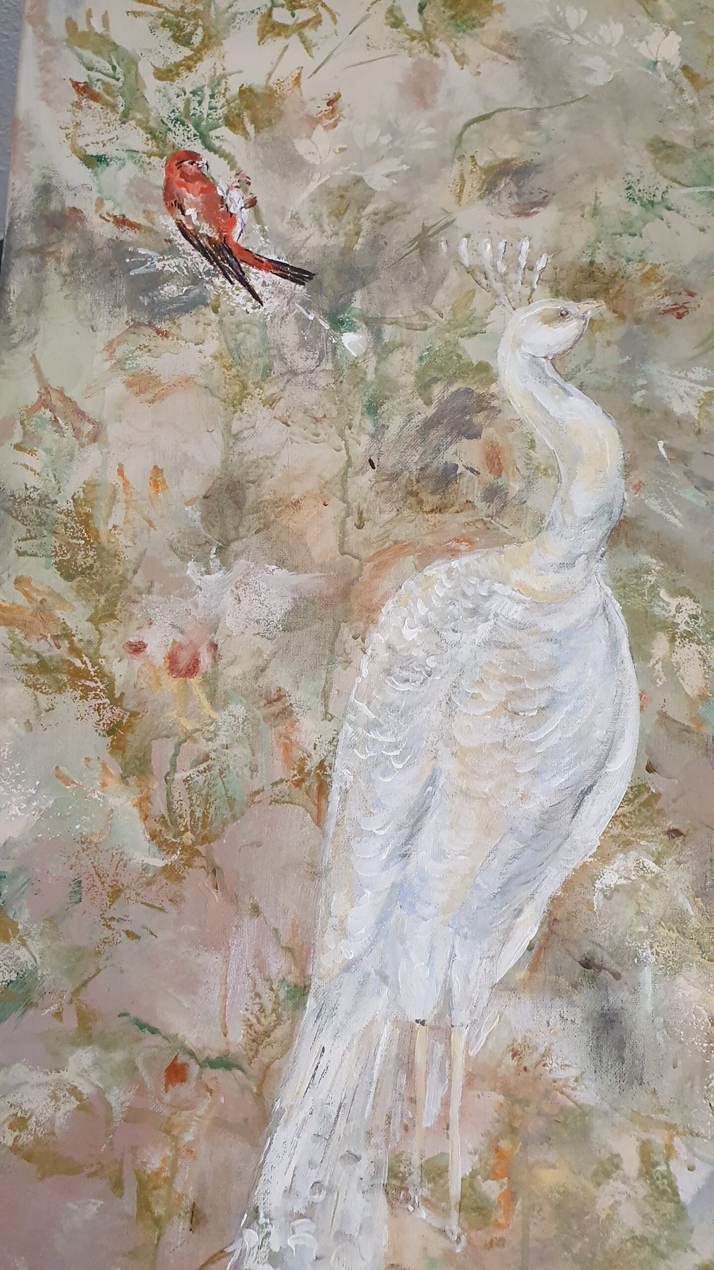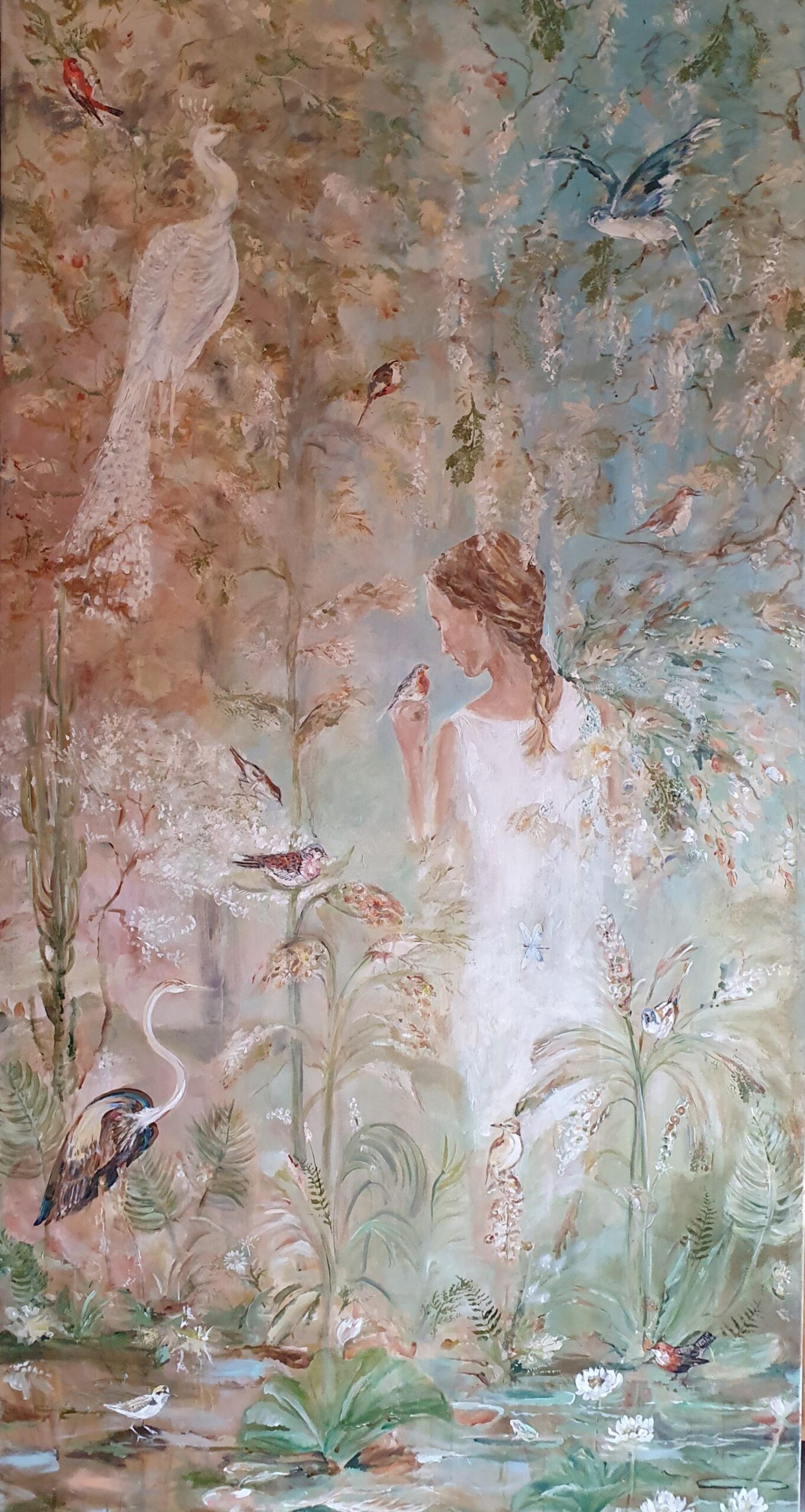 Het toont een jonge vrouw die met haar voeten in het water staat en geniet van de schoonheid van de natuur. Er zijn 13 vogels in de kijk- plaat geschilderd waaronder een tortelduif, roodborstje, zilver pauw en nachtegaal. iedere vogel heeft een symbolische betekenis. In de natuur is een deel een tropische fauna te zien, aan de linkerkant een herfst- en aan de rechterkant een bloesem landschap. Omdat God alle seizoenen gebruikt om Zijn ons schoonheid te tonen.